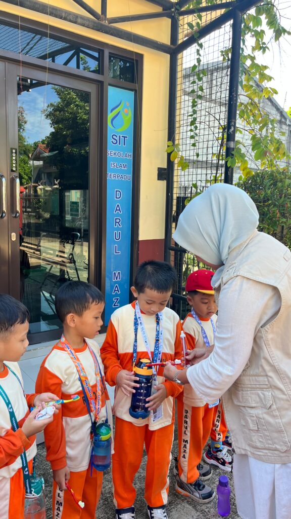 Murid RA Darul Maza Praktik Cara Menyikat Gigi yang Benar