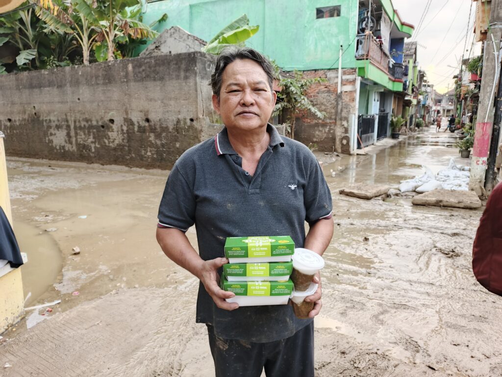 Banjir besar melanda wilayah Bekasi pada Selasa (04/03). Bukan hanya merendam rumah, tetapi juga memutus akses mereka terhadap makanan layak saat berbuka. Di tengah krisis seperti ini, Kamis (13/03) UCare Indonesia berbagi paket Ifthar Ramadan sebagai bentuk kasih sayang yang paling dibutuhkan untuk warga Pondok Gede Permai Bekasi. Takjil sederhana seperti paket makanan dan air mineral bisa jadi penyambung harapan mereka untuk tetap kuat menjalani ibadah puasa.