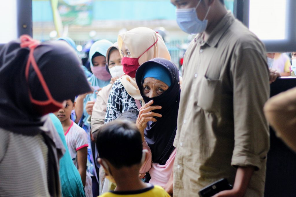 Pemberian batuan pangan terdiri dari beras dan minyak sejumlah 200 paket. Namun karena mengingat kondisi dan waktu, pendistribusian pada hari itu dibagi 2 sesi, 100 paket di sore hari dan sisanya dilakukan di esok harinya. Sejumlah ratusan paket diberikan untuk warga yang membutuhkan. Agar pembagian paket bantuan dapat diberikan secara merata dan adil, maka setiap paketnya harus ditukarkan menggunakan kupon yang diterima oleh penerima manfaat itu sendiri.