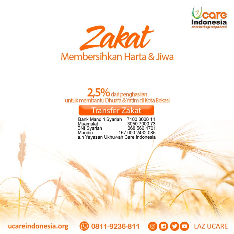 Oleh karena itu, Ukhuwah Care Indonesia mengajak masyarakat untuk membayar zakatnya. Hanya 2,5 persen dari penghasilan per bulan untuk yatim dhuafa di Kota Bekasi.