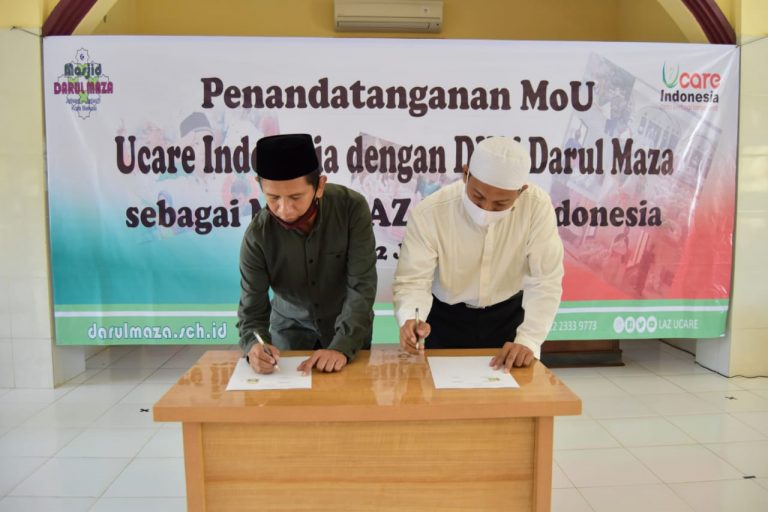 Adapun penandatanganan dari LAZ Ucare Indonesia dilakukan oleh Bapak Anwar selaku ketua Ucare Indonesia dan dari pihak Masjid Darul Maza sendiri dilakukan oleh Bapak Sujono selaku DKM Masjid Darul Maza. Penandatanganan dilakukan sebagai simbol peresmian terjalinnya hubungan mitra antara LAZ UCare Indonesia dengan Darul Maza.