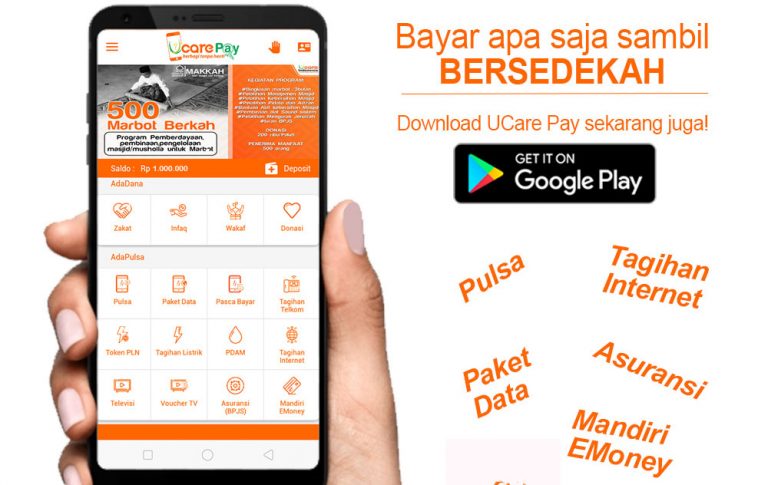 Dengan Ucare care menjadi semakin mudah membayar zakat infak sedekah, bahkan membayar penagihan dan pembelian di aplikasi, kita sudah berdonasi.